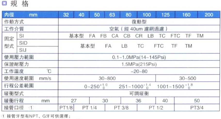 SI系列标准气缸型号