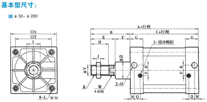 4、与ISO15552标准气缸相比,同缸径SU系列气缸长度小;